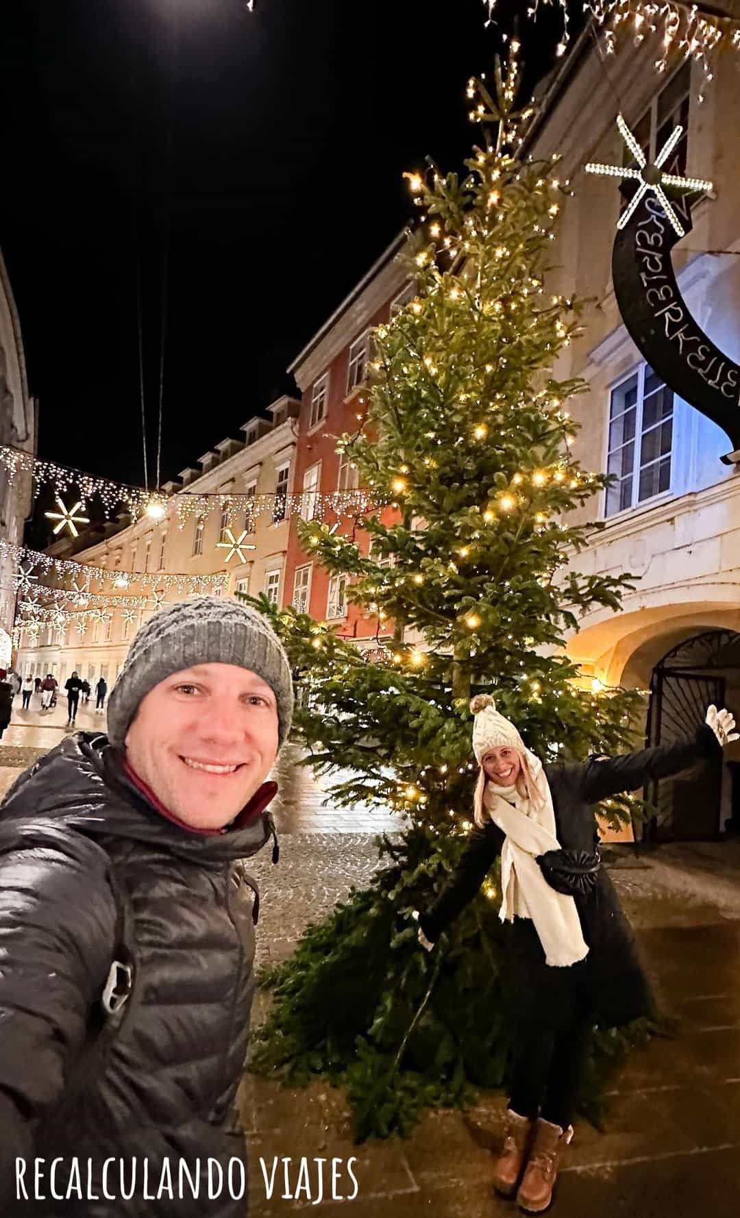 1- Mercado de Navidad de la plaza principal del casco antiguo (árbol navideño y Luces en el town hall).